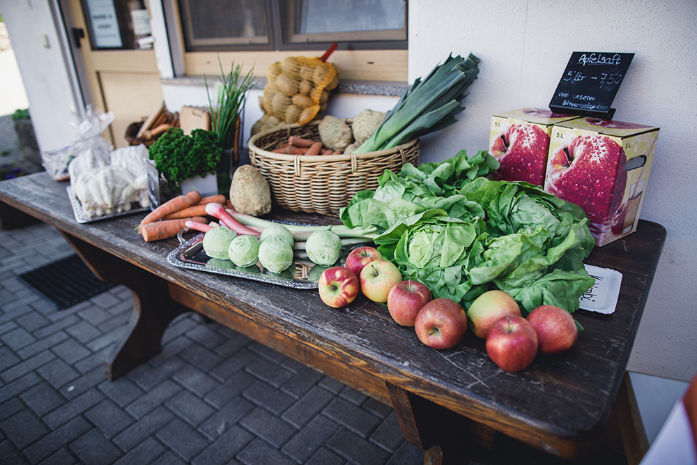 Im Hofladen bekommen Sie Rindfleisch, Eier, Brot, Obst und weitere Erzeugnisse aus eigener Landwirtschaft.
